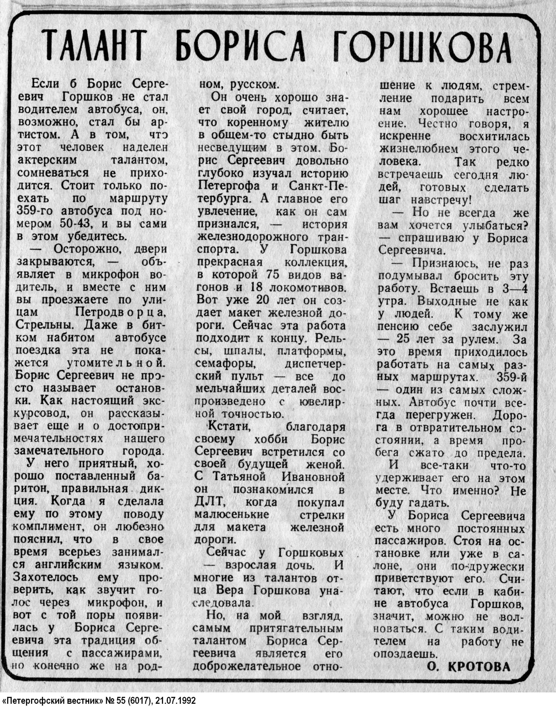 автобусного парка, впоследствии начальника Петродворцового автобусного парка