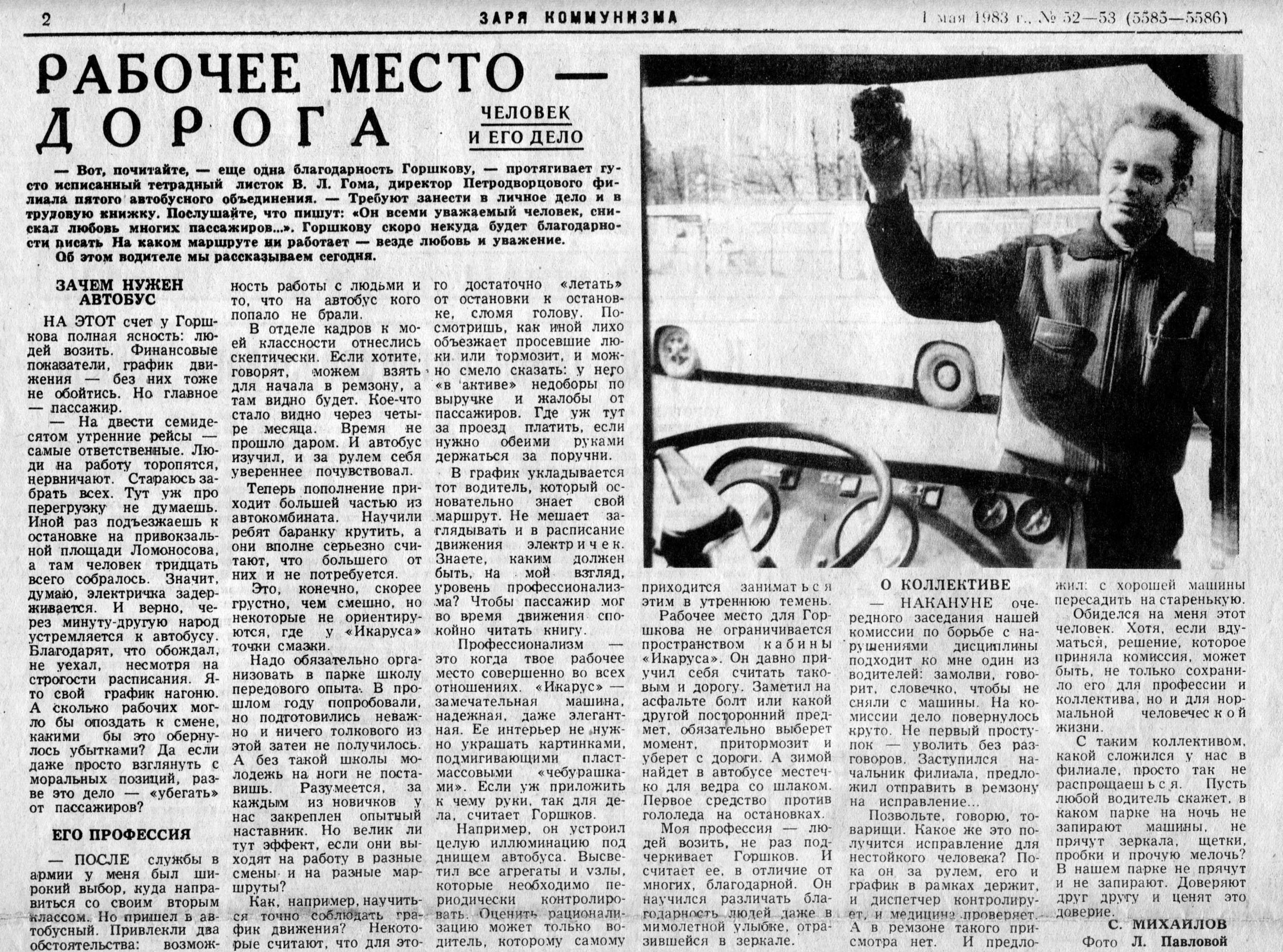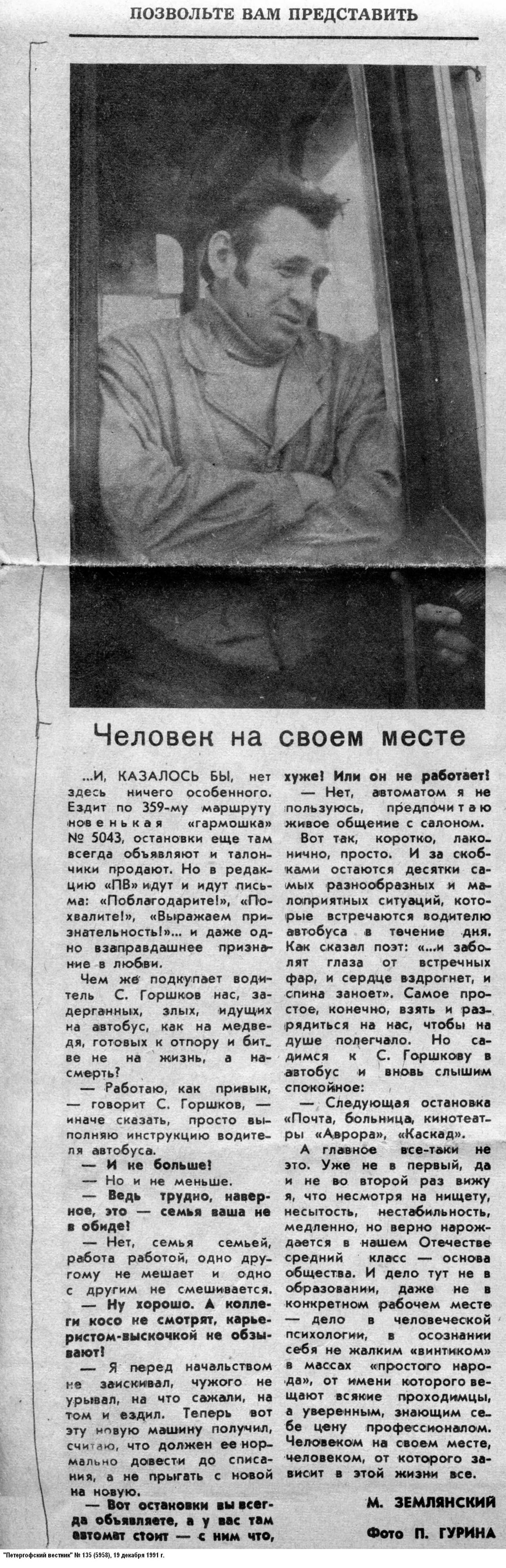 автобусного парка, впоследствии начальника Петродворцового автобусного парка